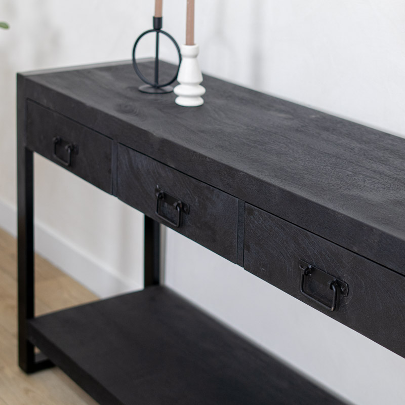 De Viggo-serie is een complete meubellijn vervaardigd uit mangohout met metalen accenten en ontworpen voor functioneel design. Van robuuste dressoirs tot compacte nachtkastjes en salontafels: elk item in de collectie ademt ambacht en moderniteit. De combinatie van naturel of zwart mangohout met strakke lijnen en stalen details maakt deze serie ideaal voor zowel woonwinkels als interieurprojecten in de hospitalitybranche. Geschikt voor direct gebruik dankzij grotendeels gemonteerde levering.